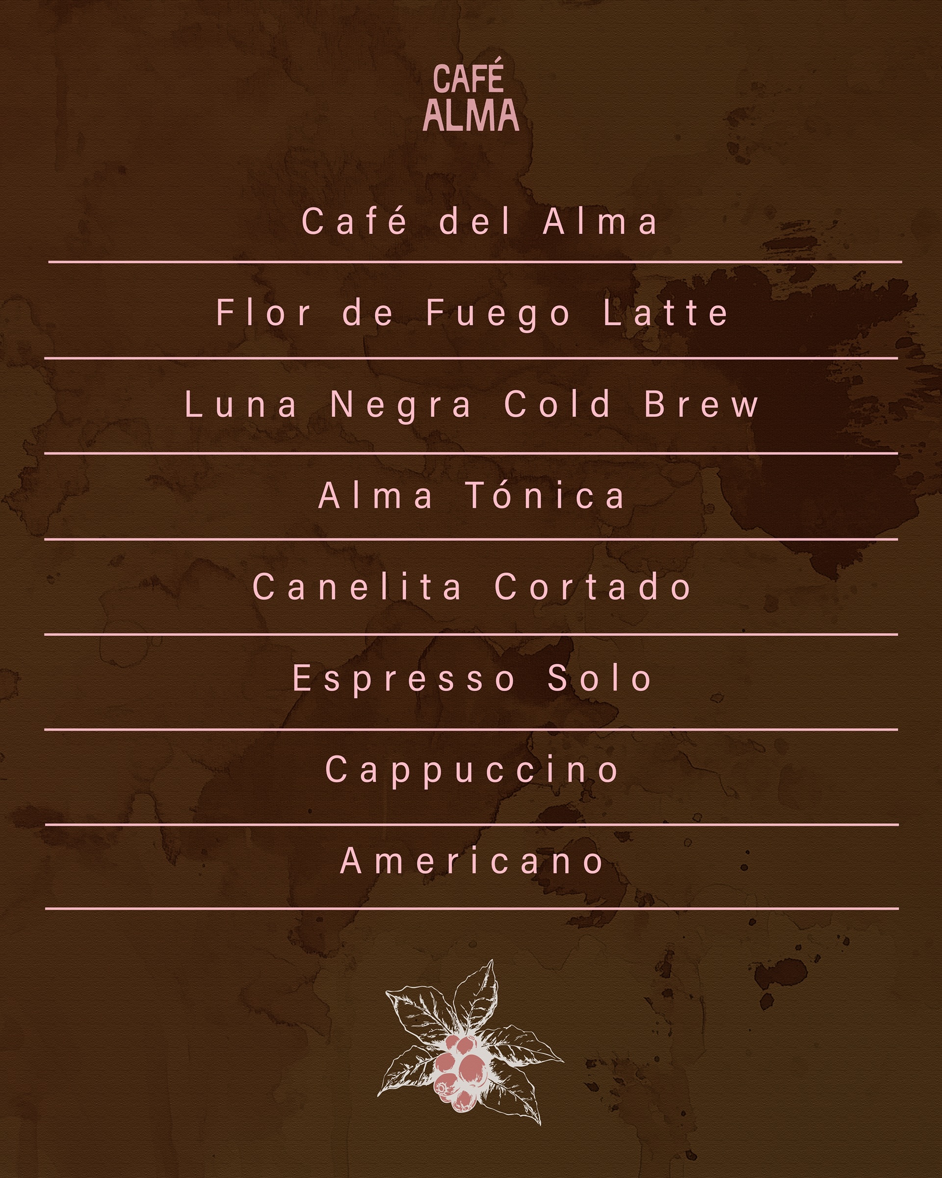 Café Alma is a conceptual coffee shop rooted in feminine energy, Colombian heritage, and soulful rituals. Designed to celebrate softness and strength, Café Alma blends the natural beauty of coffee culture with poetic storytelling and visual warmth. The brand reflects an atmosphere where everyday rituals become acts of self-connection, community, and care.